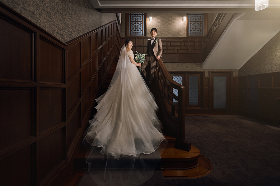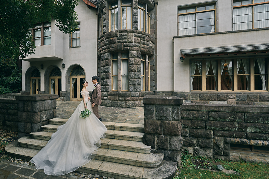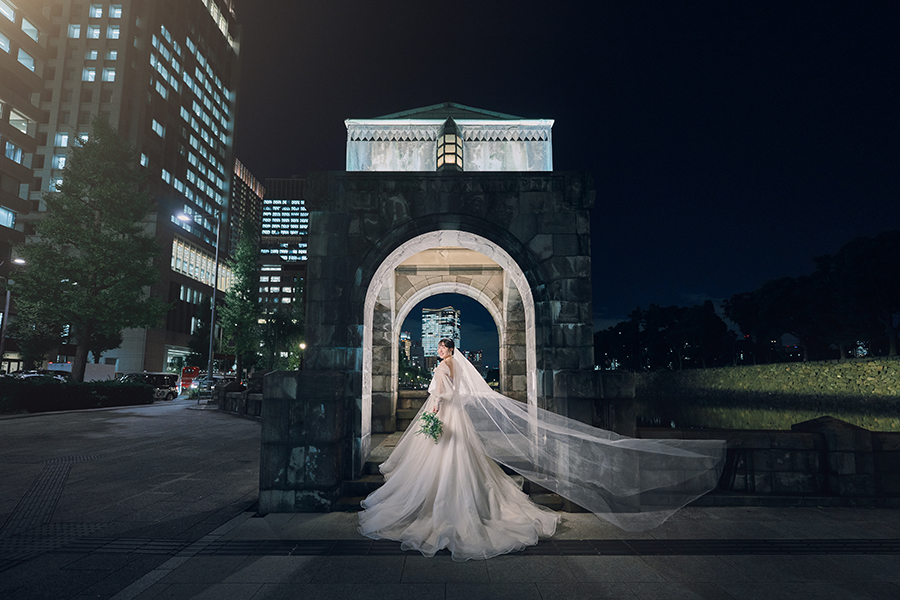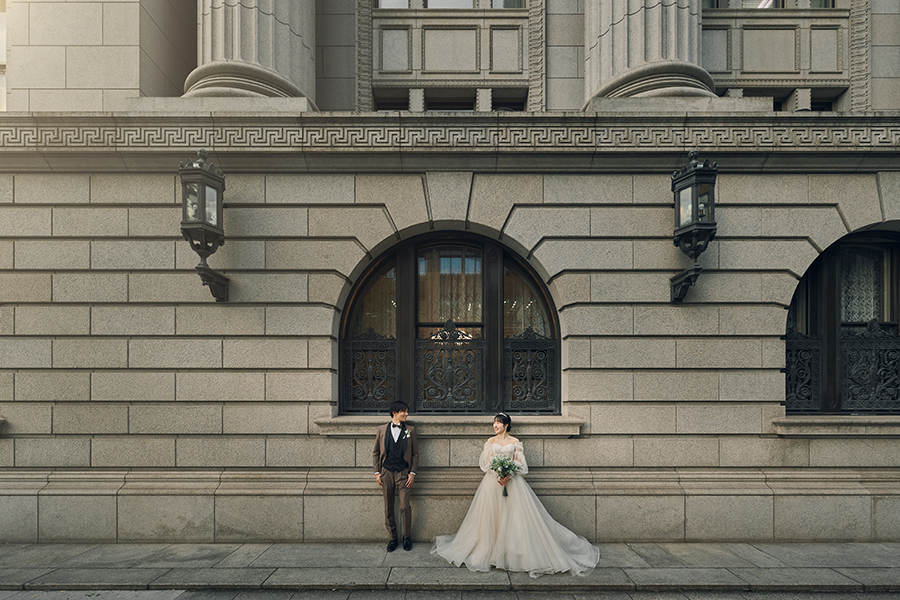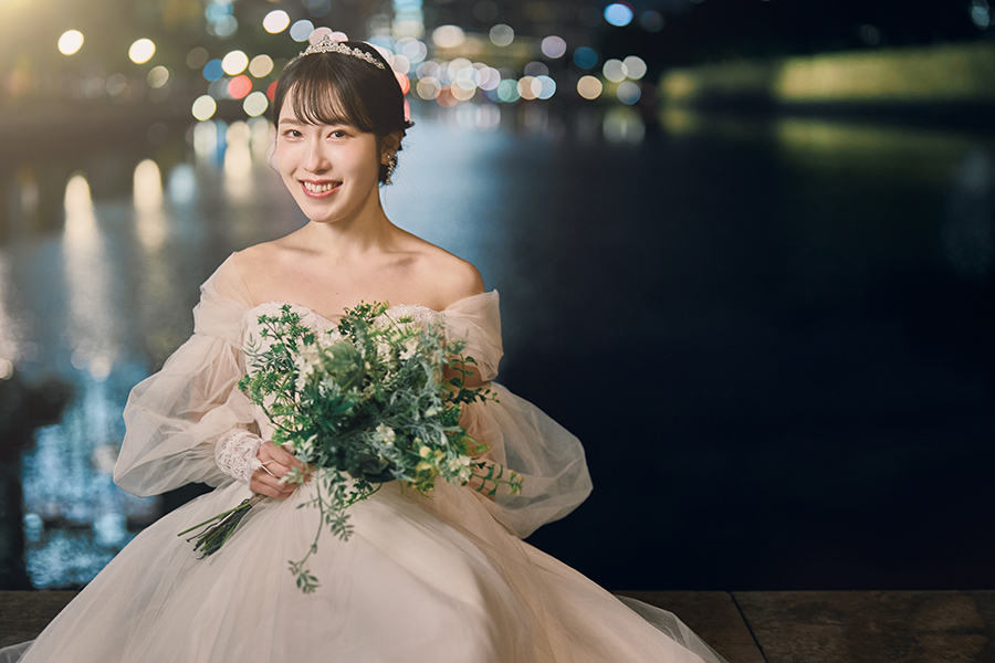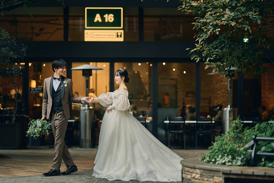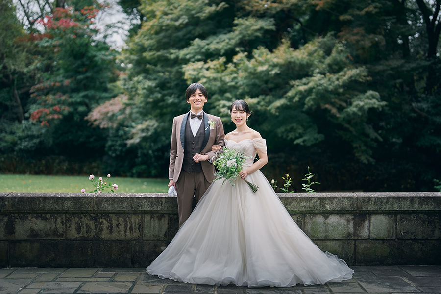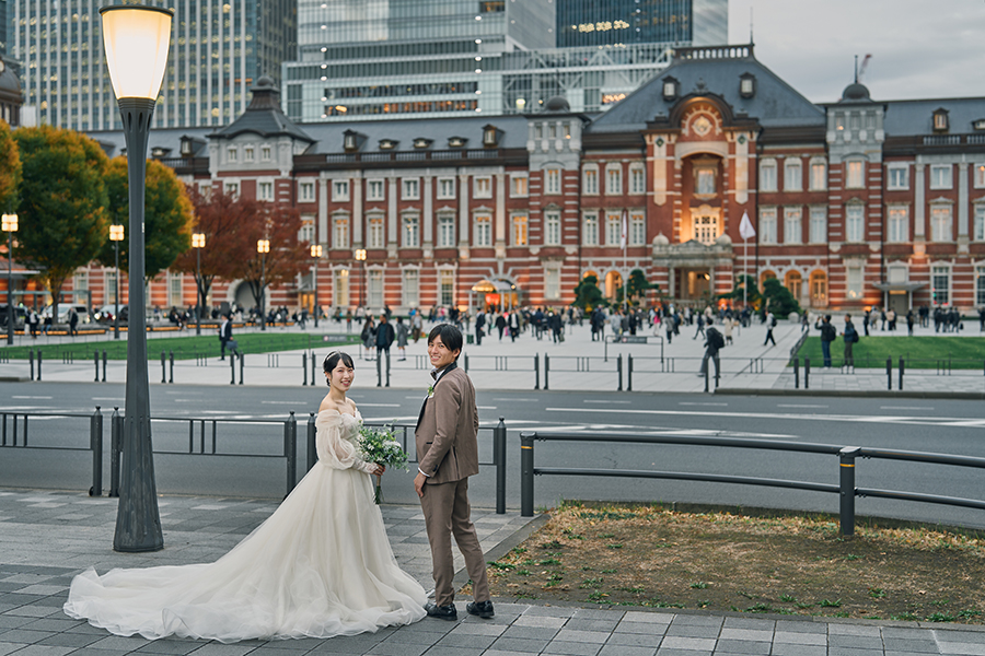 東京駅の街並みやクラシカルな洋館、ガーデンロケーションにも美しく映えるドレスです。