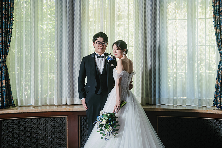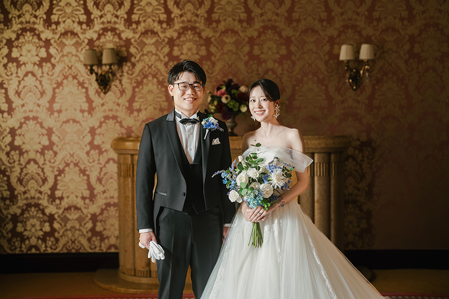 シンプルながらも洗練された佇まいが、新郎さまの魅力を引き立てます。