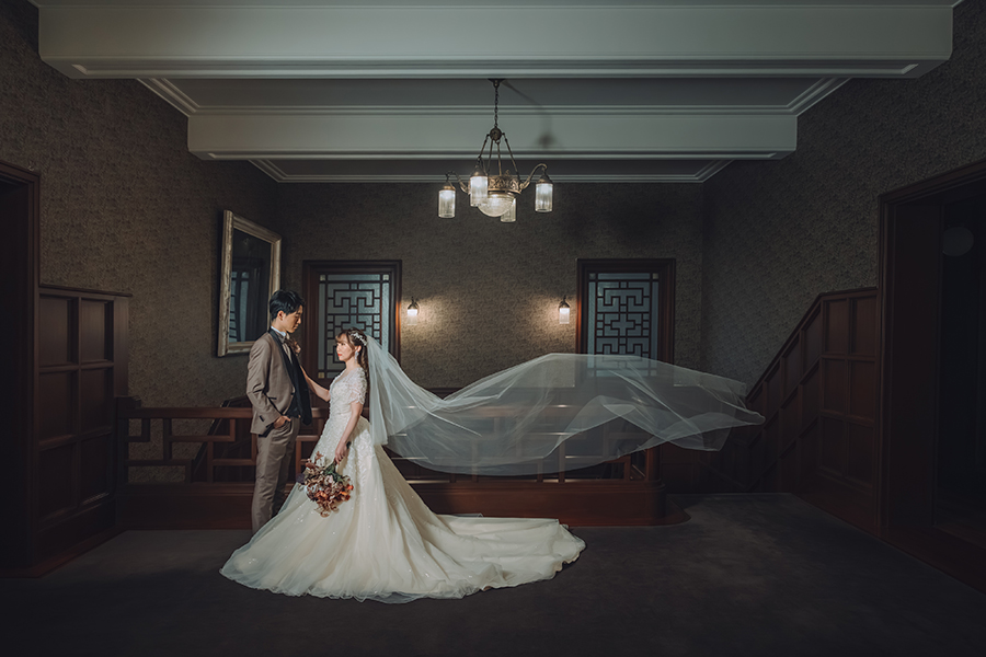 ブラックベストと蝶ネクタイを合わせることで、落ち着きの中に程よい緊張感を添えています。