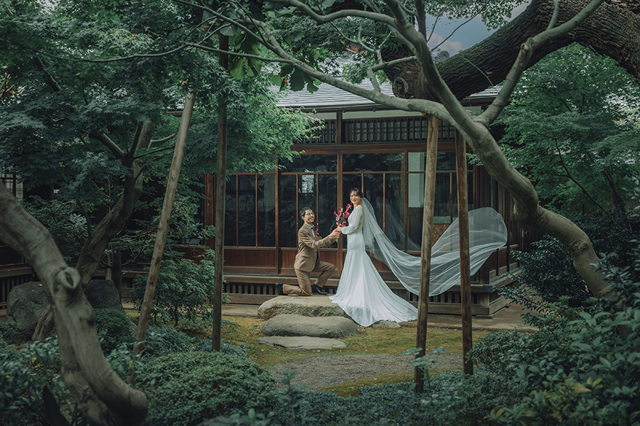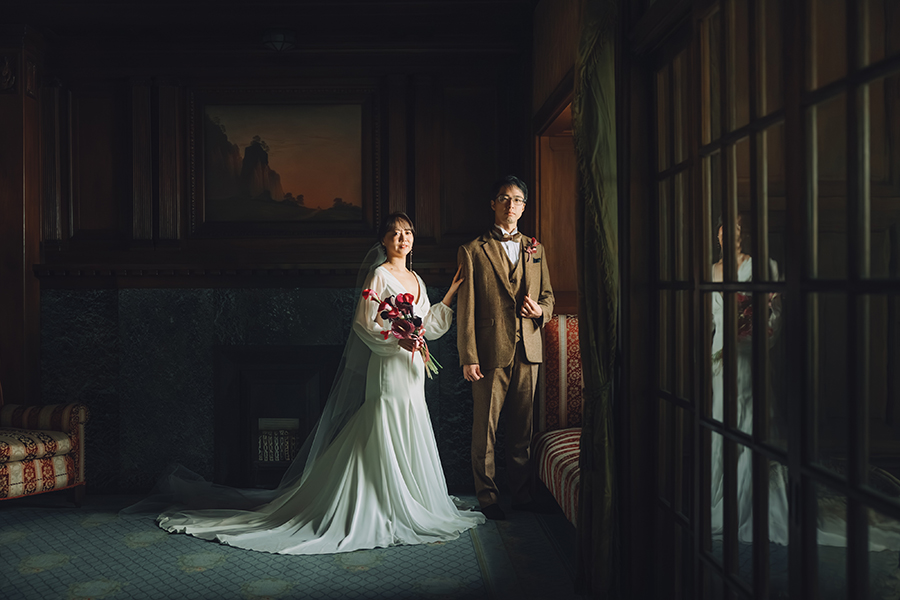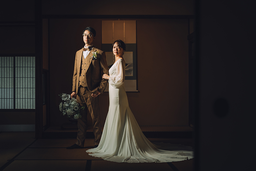 余計な装飾を削ぎ落としたシルエットが、花嫁さまの自然な佇まいと凛とした美しさを引き立てます。